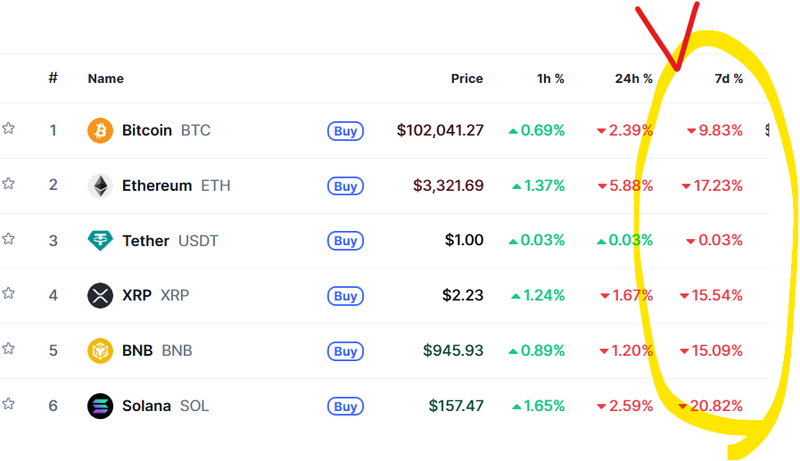 비트코인과 이더리움이 10월 10일부터 빠지기 시작하더니, 11월 3일 급하락하면서 어느덧 비트코인은 전고점인 $126K 대비 △20%가 빠진 $101K 가격을 보이고 있다 (2025.11.05 기준). 한때 100K를 깨며 99K를 살짝 터치했지만 반등하여 101K를 지지하고 있다.